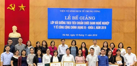 Sáng ngày 12.11.2019, Viện Vệ sinh dịch tễ Trung ương tổ chức Lễ bế giảng “Lớp bồi dưỡng theo tiêu chuẩn chức danh nghề nghiệp Y tế công cộng chính (hạng II) - Khóa I, năm 2019.