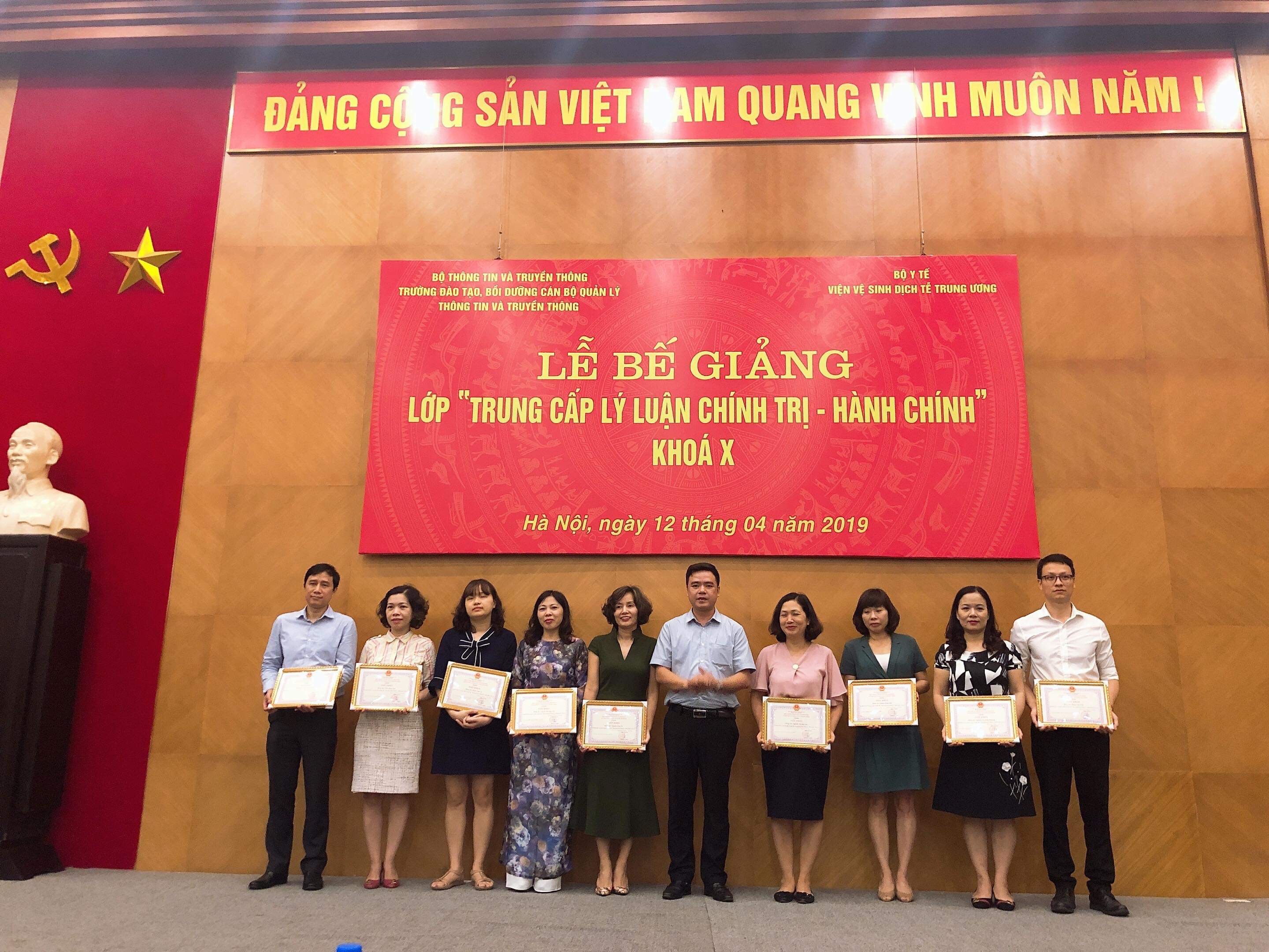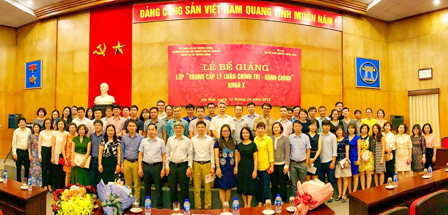 áng ngày 12.4.2019, tại Viện Vệ sinh dịch tễ Trung ương, Trường Đào tạo, bồi dưỡng cán bộ quản lý Thông tin và Truyền thông tổ chức Lễ bế giảng “Lớp Trung cấp Lý luận Chính trị - Hành chính” khóa X.