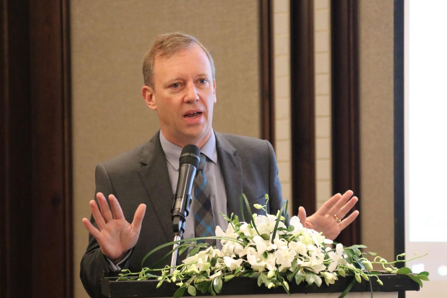 Đại sứ Anh tại Việt Nam, ông Gareth Ward, phát biểu tại Hội thảo