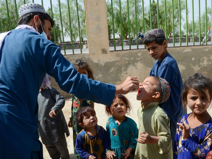 Trẻ em tại Kandahar, Afghanistan được uống vaccine bại liệt, ngày 23/5. Ảnh: AFP