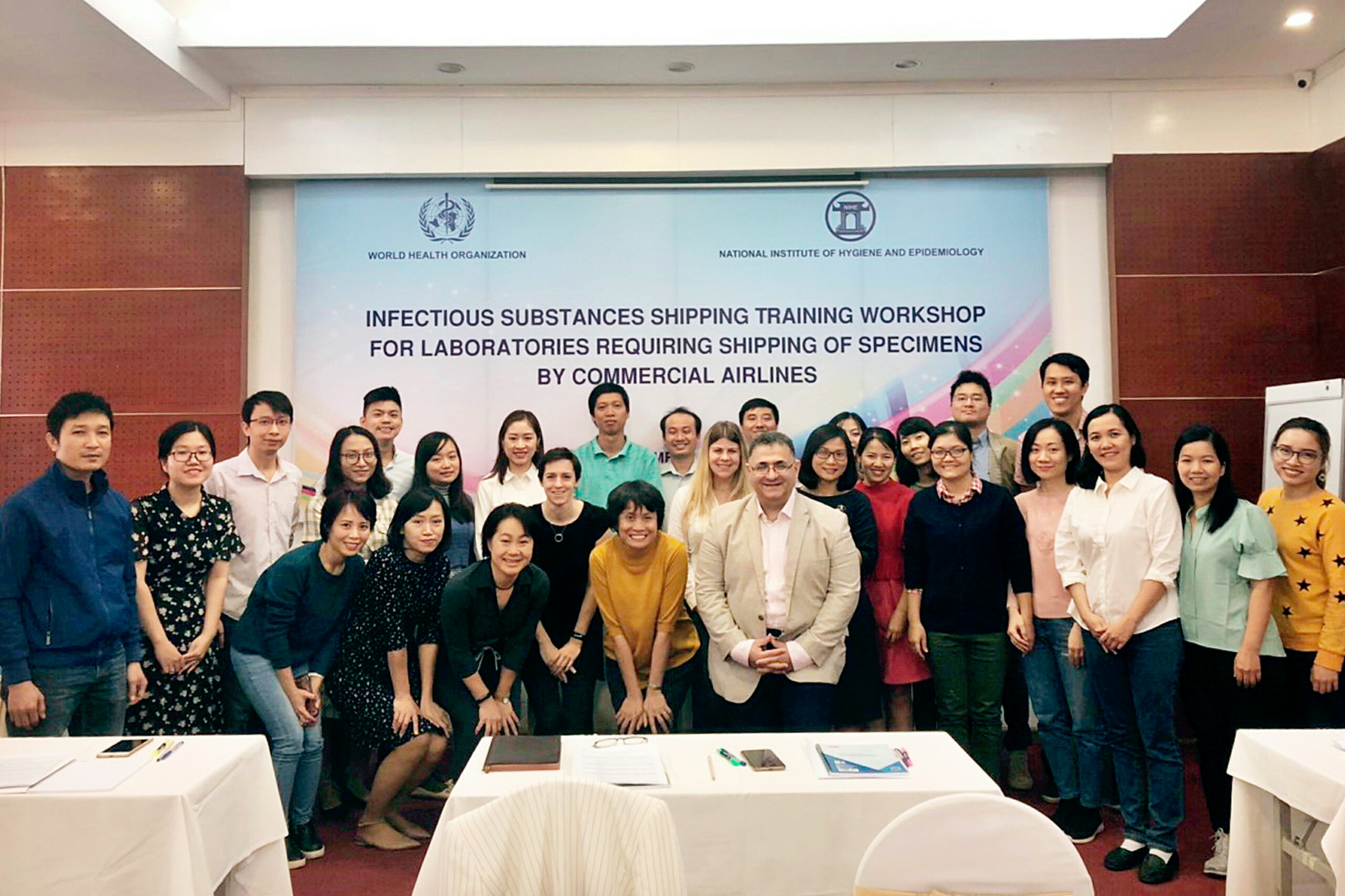 Trong khuôn khổ chương trình hợp tác giữa Viện Vệ sinh dịch tễ Trung ương và Tổ chức Y tế thế giới năm 2019, với mục tiêu đào tạo và nâng cao kiến thức về việc đóng gói, vận chuyển các chất lây nhiễm qua đường hàng không dành cho các cán bộ tại các Viện Vệ sinh Dịch tễ, Viện Pasteur khu vực và một số Viện, Bệnh viện, Trung tâm tại thành phố Hà Nội và thành phố Hồ Chí Minh, Viện Vệ sinh dịch tễ Trung ương tổ chức "Tập huấn vận chuyển các chất lây nhiễm qua đường hàng không cho cán bộ phòng thí nghiệm”. Khoá tập huấn đã diễn ra trong 2 ngày 20-21/11/2019 và đạt được những kết quả hết sức tốt đẹp.