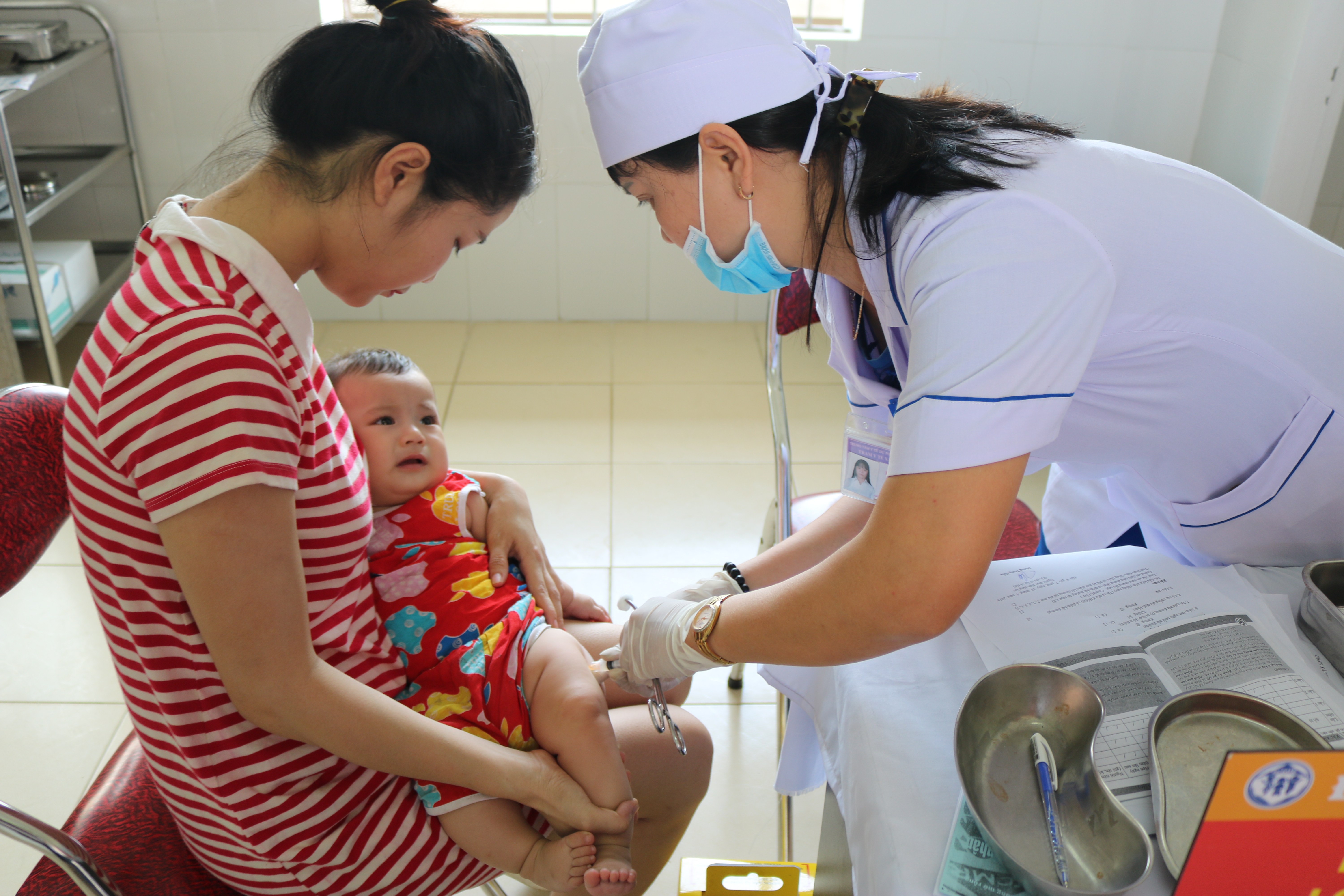Hình ảnh trẻ tại điểm tiêm chủng. Ảnh: Nguyễn Đoàn
