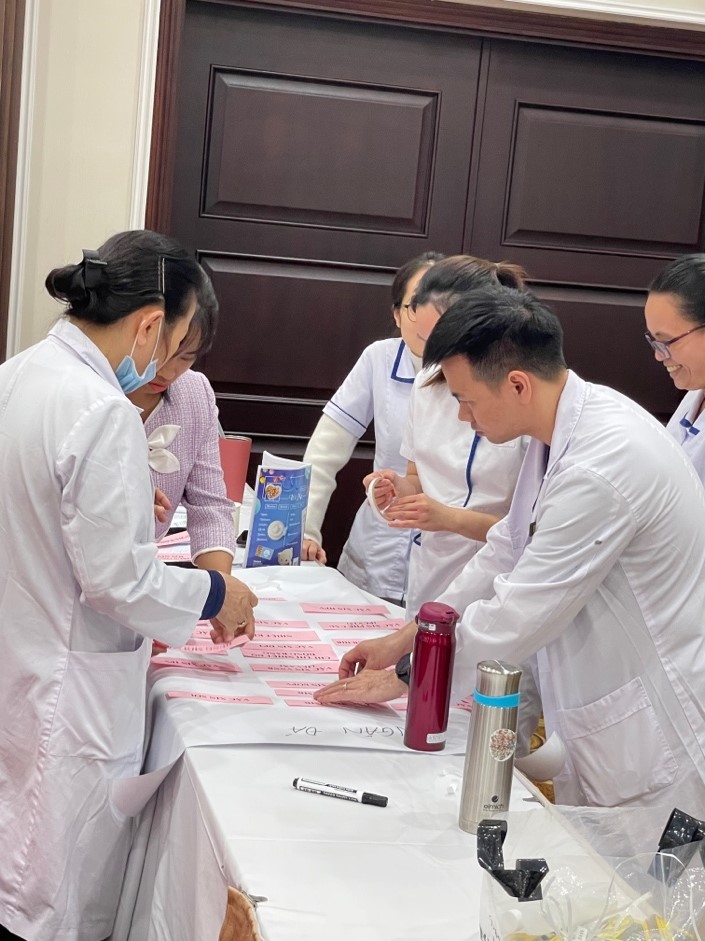 Bên cạnh đó, các nội dung thực hành được xây dựng sát với thực tiễn, bao gồm: tổ chức buổi tiêm chủng và tham quan thực tế tại phòng Tiêm của Bệnh viện; thực hành khám sàng lọc trước tiêm và chỉ định tiêm chủng; tư vấn cho người được tiêm và người nhà về lợi ích, nguy cơ của tiêm chủng, cũng như hướng dẫn theo dõi và xử trí các phản ứng sau tiêm chủng tại nhà. Thông qua các hoạt động thực hành, học viên có cơ hội trao đổi kinh nghiệm, thảo luận tình huống và củng cố kỹ năng chuyên môn, góp phần nâng cao chất lượng dịch vụ tiêm chủng tại đơn vị công tác.