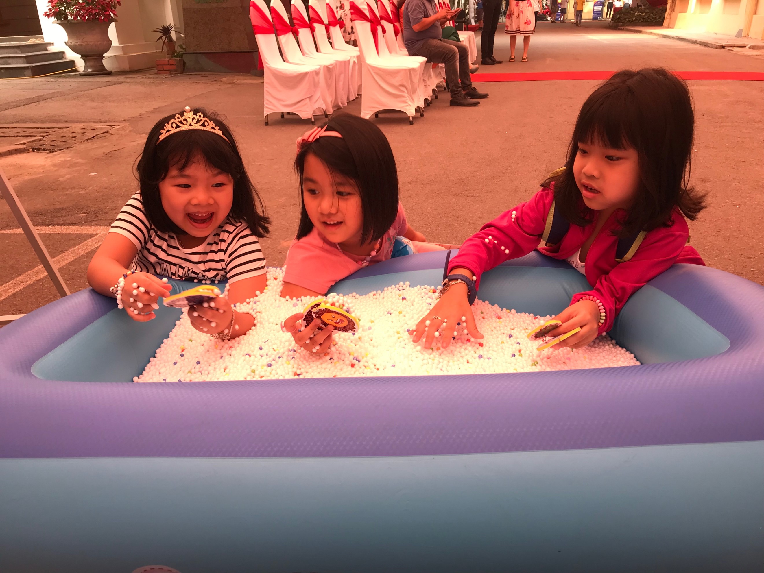 Các bạn học sinh vui chơi tại gian hàng của khoa Vi rút